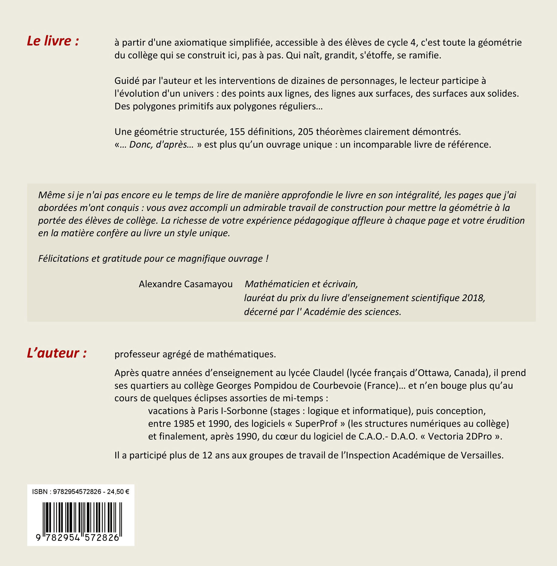Les axiomes... ... d'Euclide ... de Hilbert ... de Choquet Les "métaxiomes" du livre Un peu de logique Personnages de Lauréline Oublis, erreurs... et regrets